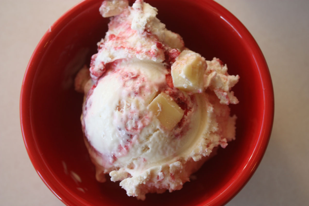 Ingredients: Cream, Milk, Sugars (sugar/glucose-fructose), Raspberries, Water, Raspberry seeds, Pectin, Citric acid, Sodium benzoate, Vegetable oil, Cocoa butter, Whole milk powder, Nonfat dry milk, Milkfat, Soy lecithin, Skim milk powder, Whey powder, Mono & diglycerides, Guar gum, Xanthan gum, Carrageenan, Locust bean gum, Natural & artificial flavours, Caramel colour